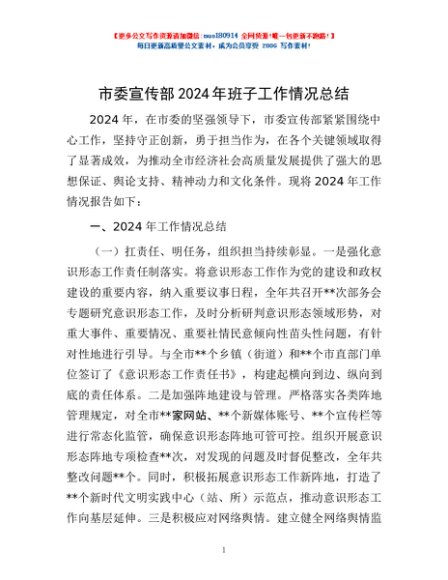 / 市委宣传部2024年班子工作情况总结