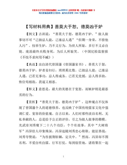 【写材料用典】善莫大于恕,德莫凶于妒