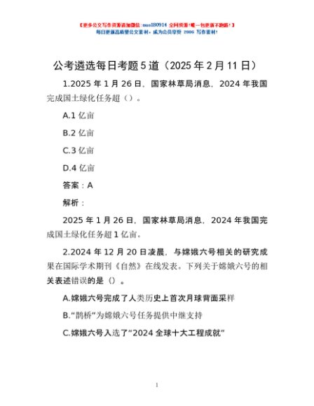 / 公考遴选每日考题5道(2025年2月11日)