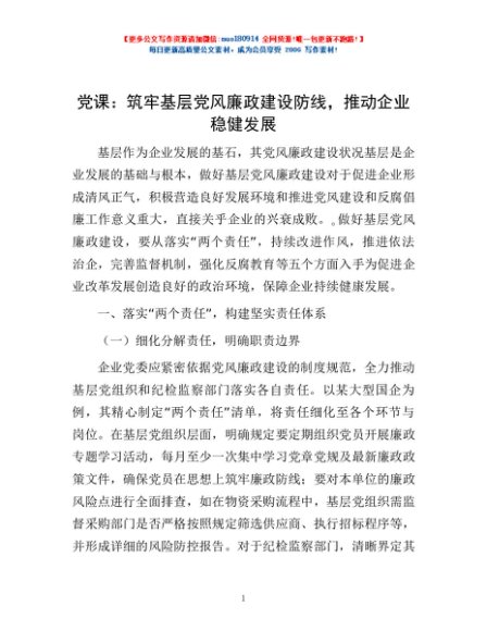 / 党课:筑牢基层党风廉政建设防线,推动企业稳健发展