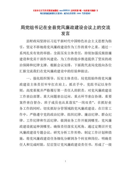 / 局党组书记在全县党风廉政建设会议上的交流发言