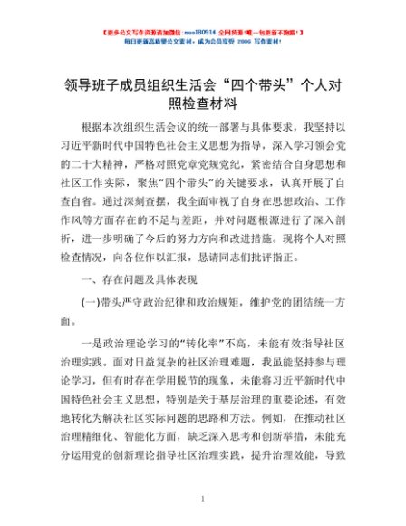 / 领导班子成员组织生活会“四个带头”个人对照检查材料