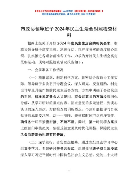 / 市政协领导班子2024年民主生活会对照检查材料