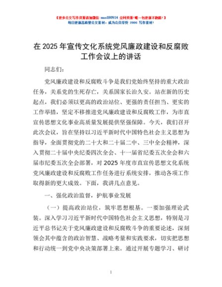 / 在2025年宣传文化系统党风廉政建设和反腐败工作会议上的讲话