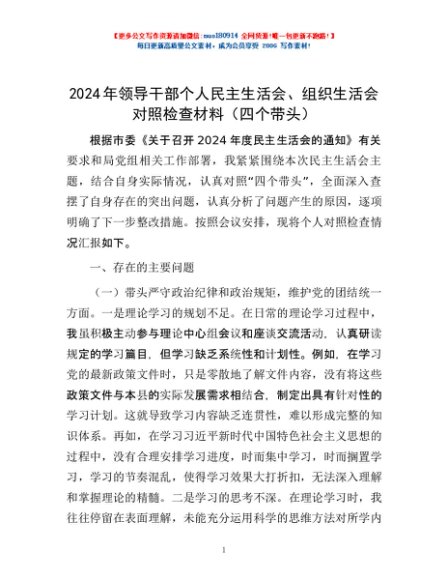 / 2024年领导干部个人民主生活会、组织生活会对照检查材料(四个带头)
