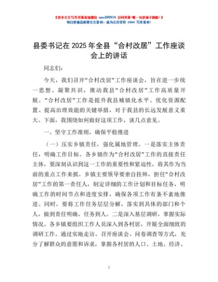 / 县委书记在2025年全县“合村改居”工作座谈会上的讲话