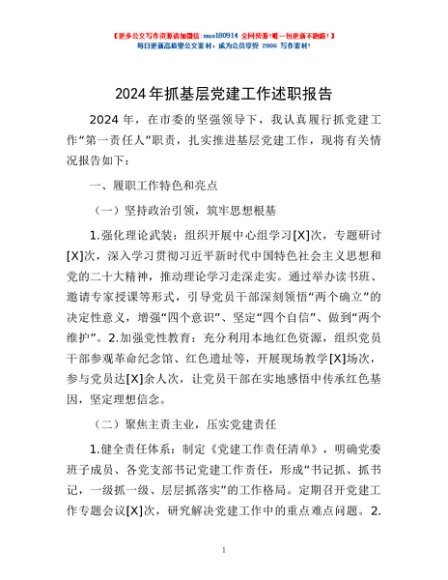 / 2024年抓基层党建工作述职报告