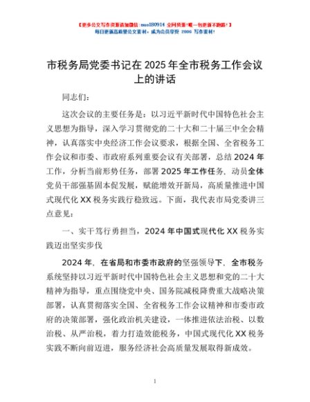 / 市税务局党委书记在2025年全市税务工作会议上的讲话