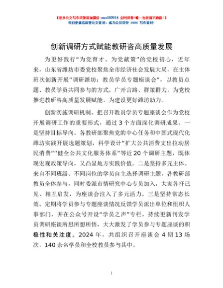 创新调研方式赋能教研咨高质量发展