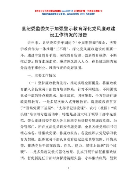 / 县纪委监委关于加强警示教育深化党风廉政建设工作情况的报告