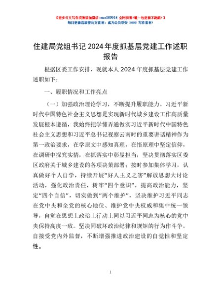 / 住建局党组书记2024年度抓基层党建工作述职报告