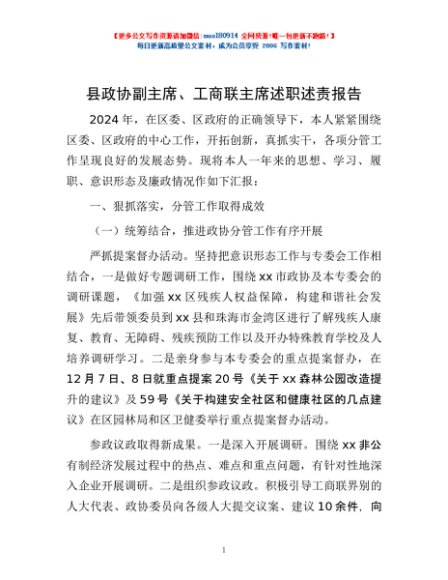 / 县政协副主席、工商联主席述职述责报告