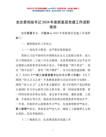 / 发改委党组书记2024年度抓基层党建工作述职报告