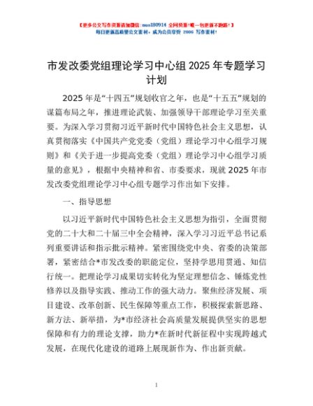 / 市发改委党组理论学习中心组2025年专题学习计划
