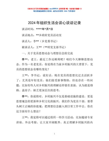 / 2024年组织生活会谈心谈话记录