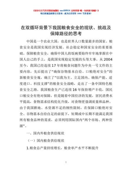 / 在双循环背景下我国粮食安全的现状、挑战及保障路径的思考