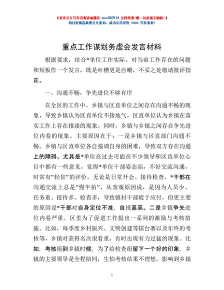 / 重点工作谋划务虚会发言材料