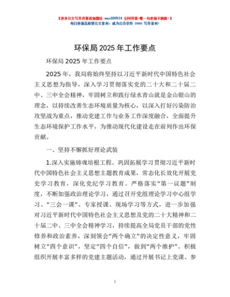 / 环保局2025年工作要点