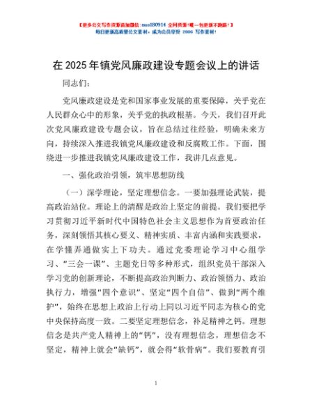 / 在2025年镇党风廉政建设专题会议上的讲话