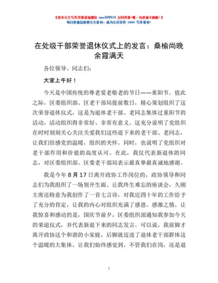 / 在处级干部荣誉退休仪式上的发言:桑榆尚晚 余霞满天