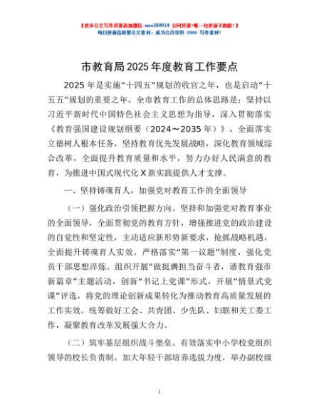 / 市教育局2025年度教育工作要点