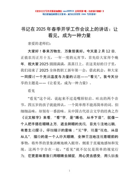 / 书记在2025年春季开学工作会议上的讲话:让看见,成为一种力量
