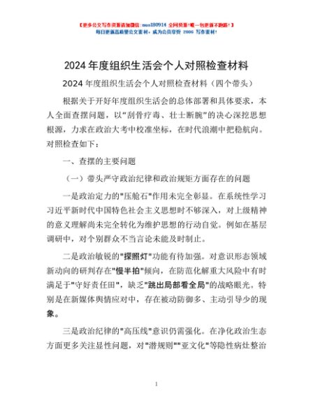 / 2024年度组织生活会个人对照检查材料
