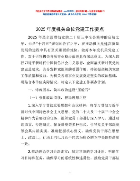 / 2025年度机关单位党建工作要点