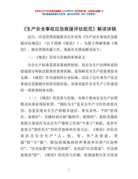 / 《生产安全事故应急救援评估规范》解读讲稿