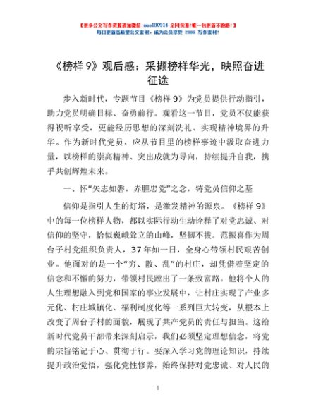 / 《榜样9》观后感:采撷榜样华光,映照奋进征途