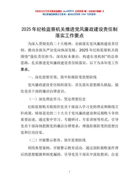 / 2025年纪检监察机关推进党风廉政建设责任制落实工作要点
