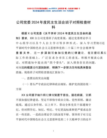 / 公司党委2024年度民主生活会班子对照检查材料