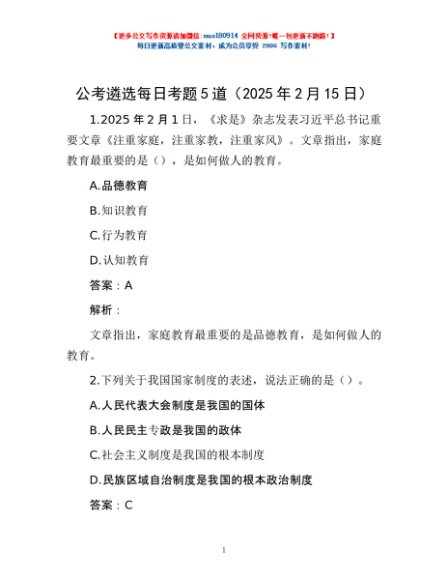 / 公考遴选每日考题5道(2025年2月15日)