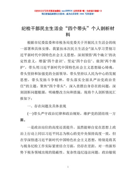 / 纪检干部民主生活会“四个带头”个人剖析材料