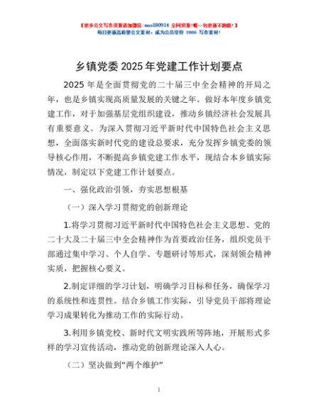 乡镇党委2025年党建工作计划要点