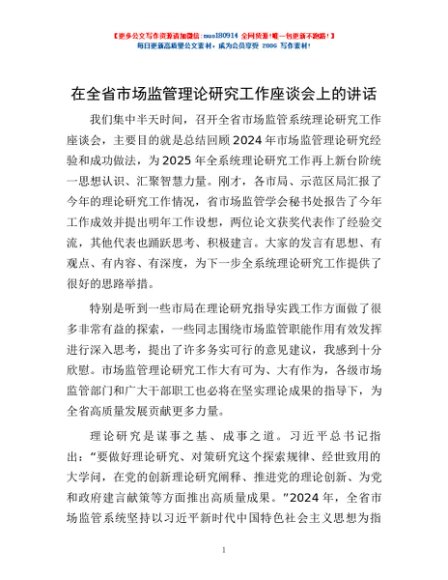 / 在全省市场监管理论研究工作座谈会上的讲话