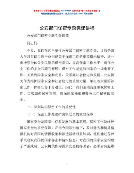 / 公安部门保密专题党课讲稿