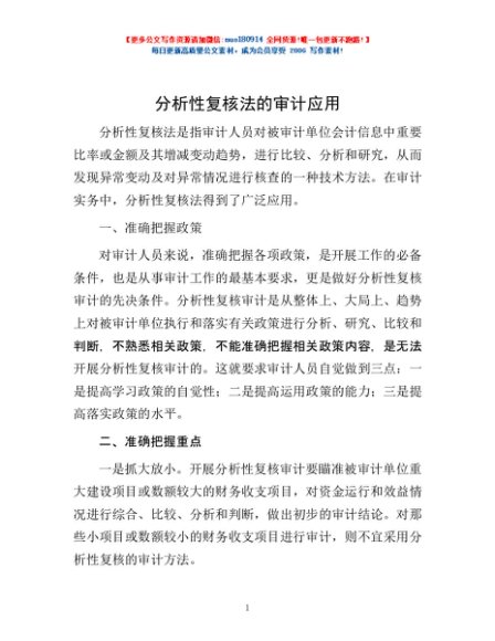 / 分析性复核法的审计应用