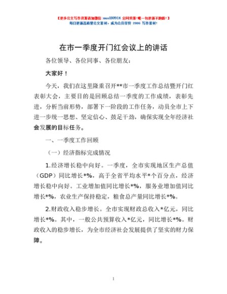 / 在市一季度开门红会议上的讲话