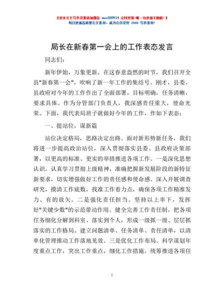 / 局长在新春第一会上的工作表态发言