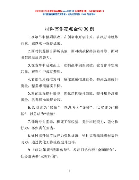 / 材料写作亮点金句30例