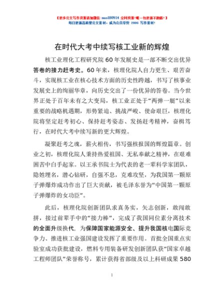 / 在时代大考中续写核工业新的辉煌