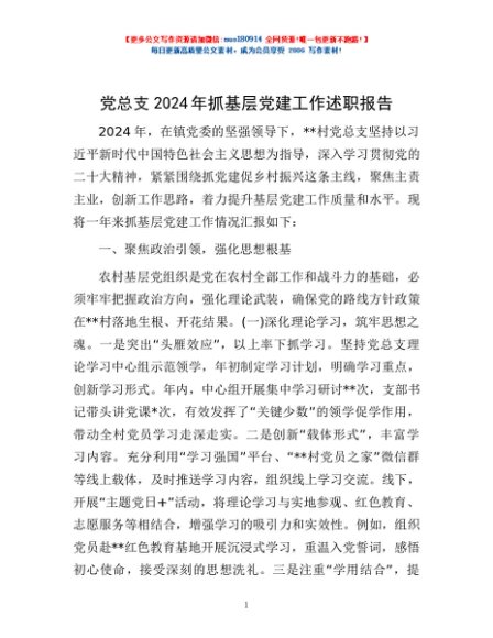 / 党总支2024年抓基层党建工作述职报告
