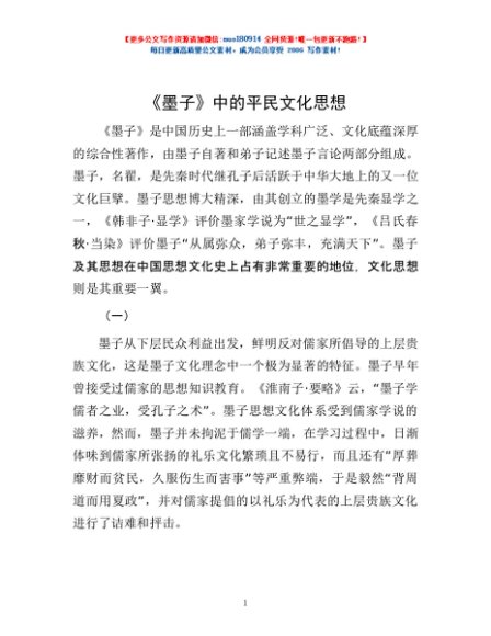 / 《墨子》中的平民文化思想