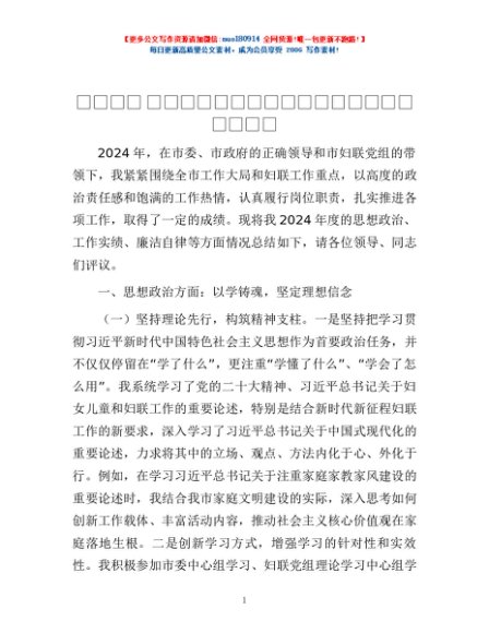 / 2024年某市妇联副主席领导干部年度考核自我总结