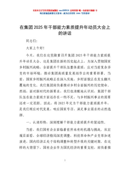 / 在集团2025年干部能力素质提升年动员大会上的讲话