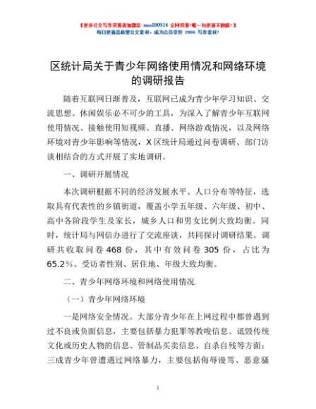 / 区统计局关于青少年网络使用情况和网络环境的调研报告