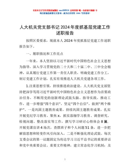 / 人大机关党支部书记2024年度抓基层党建工作述职报告