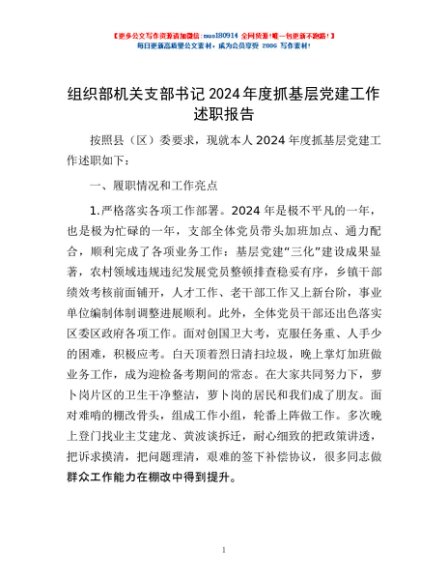 / 组织部机关支部书记2024年度抓基层党建工作述职报告