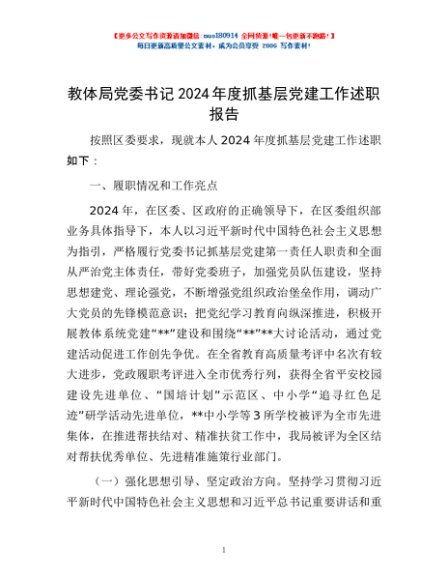 / 教体局党委书记2024年度抓基层党建工作述职报告